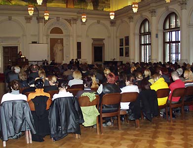 | Abbildung 1: Eine vollbesetzte Aula bei der ganztägigen Veranstaltung