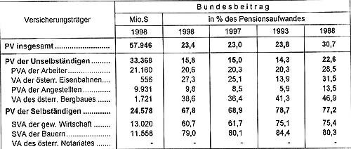 Der Anteil des Bundesbeitrages am gesamten Pensionsaufwand ist von 1988-1998