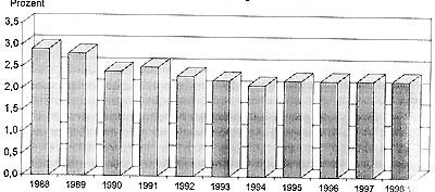 Der Anteil des Bundesbeitrages am Bruttoinlandprodukt BIP ist von 1988-1998