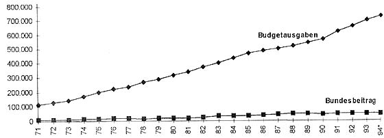 Die Bundesausgaben sind im Zeitraum 1971-94 um